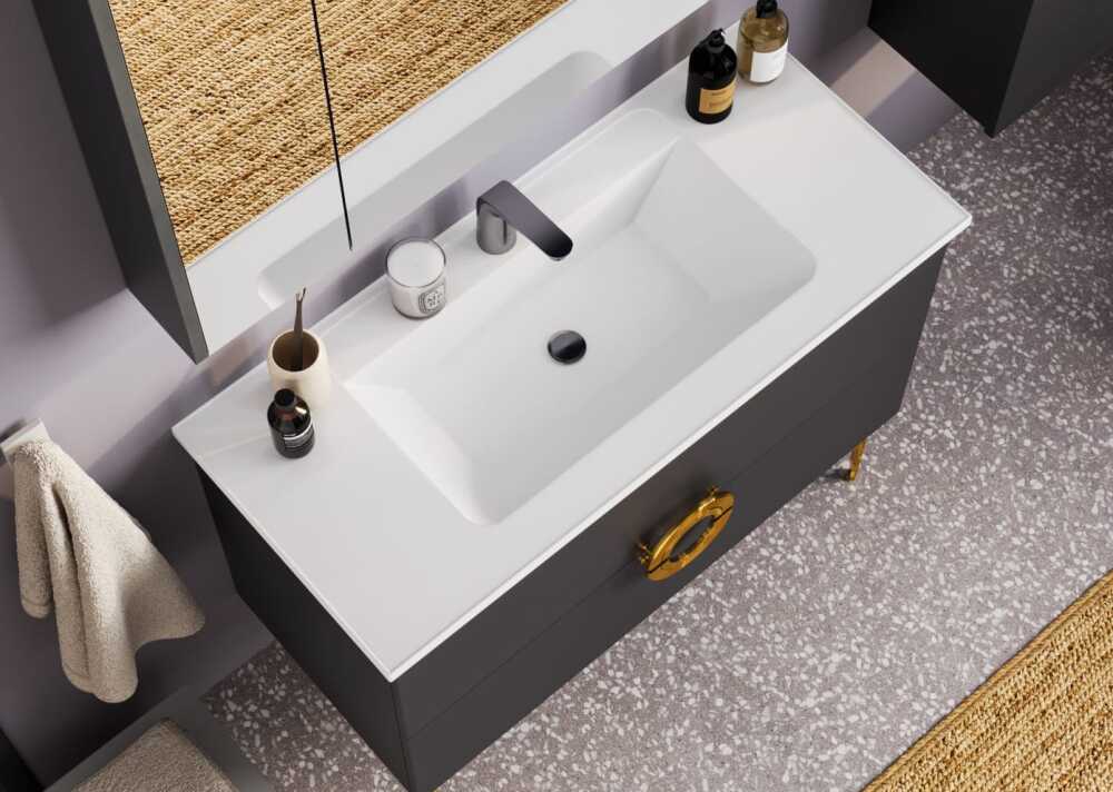 Badella Polo Banyo Dolap Takımı 100cm Antrasit Polo 55100 V52