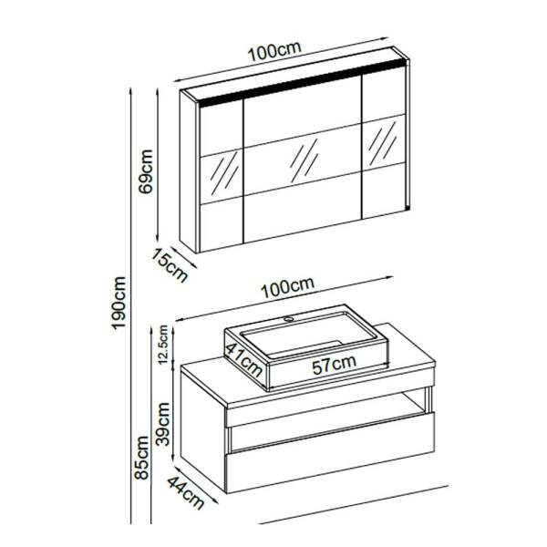 | Badella Vital Banyo Dolap Takımı VITAL 39100 V31 Alt Dolap Ölçüleri Genişlik: 100cm Derinlik: 44cm Yükseklik: 85cm