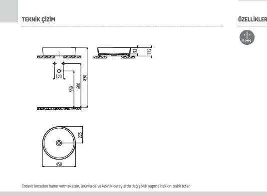 . Çapı 45 cm Yuvarlak Çanak Lavabo