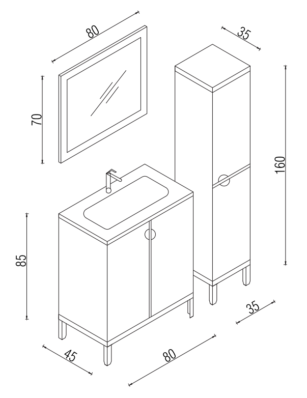 Kalay banyo dolabının modern tasarımı her türlü banyo dekoruna uyum sağlar.