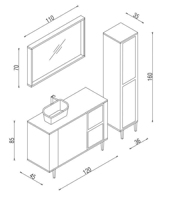 Kalay banyo dolabının modern tasarımı her türlü banyo dekoruna uyum sağlar.