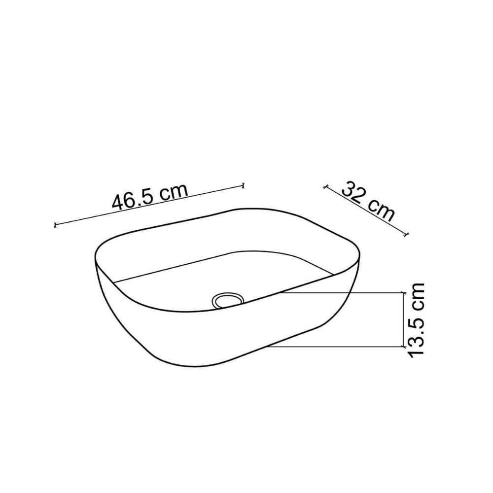 Ergonomik Elips Ölçüler: 46.5x32x13.5 cm boyutları ile lavabo üzerinde konforlu bir kullanım alanı sunan, derinliğiyle su sıçramalarını minimize eden yapı.