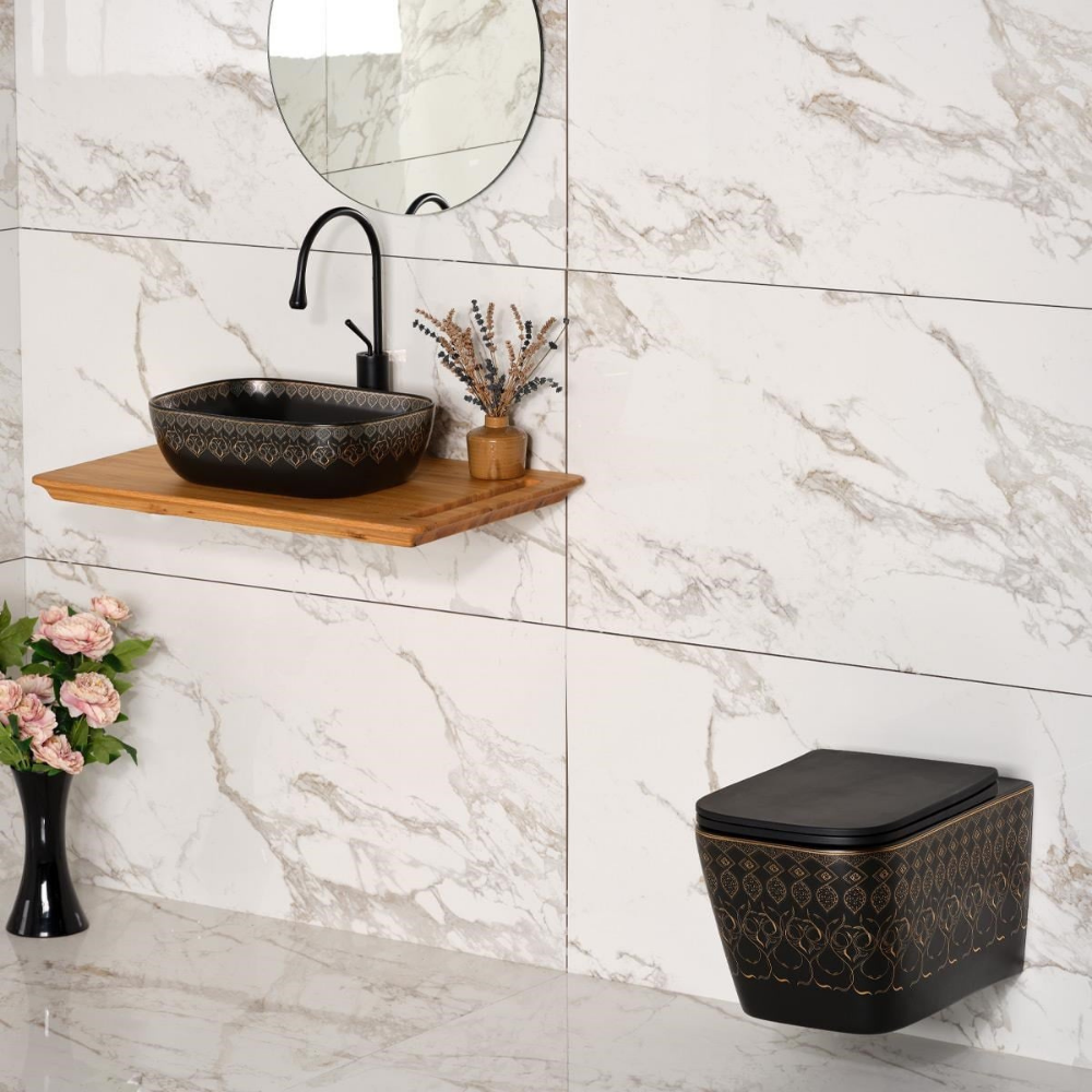 EY-7033S Tezgah Üstü Porselen Lavabo Siyah & Altın