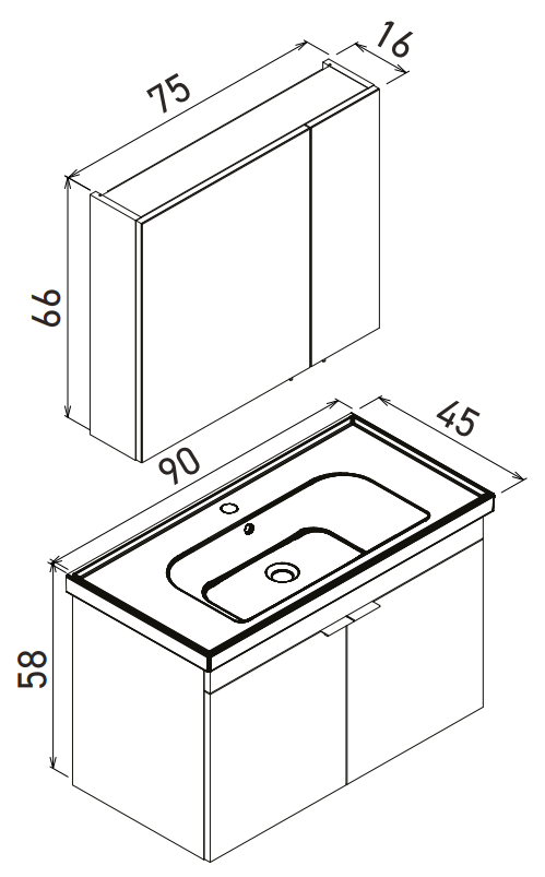 Orka banyo dolabının modern tasarımı her türlü banyo dekoruna uyum sağlar.