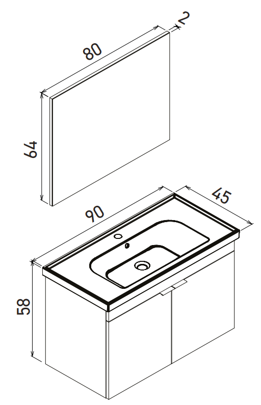 Orka banyo dolabının modern tasarımı her türlü banyo dekoruna uyum sağlar.