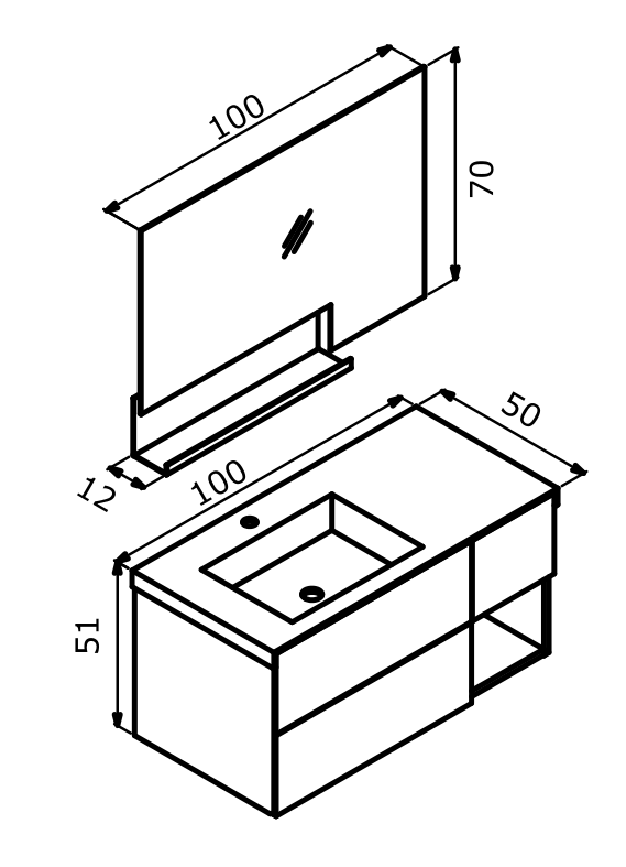 Üst Modül Tipi: Etajerli Ayna Led Aydınlatmalı