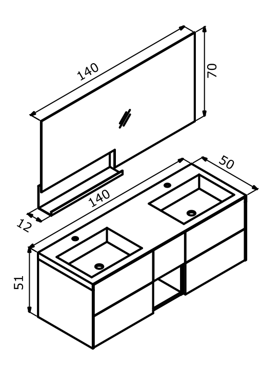 Üst Modül Tipi: Etajerli Ayna Led Aydınlatmalı