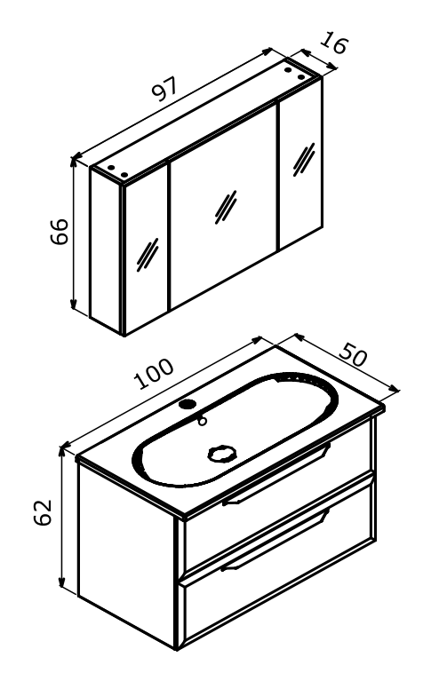 Üst Modül Tipi: Dolaplı Ayna, Led Aydınlatmalı