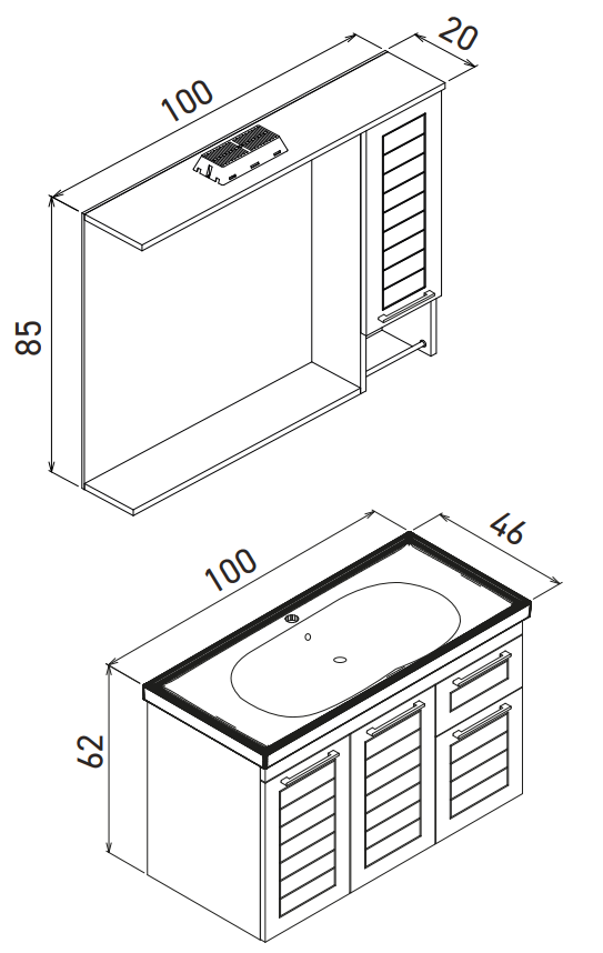 Üst Modül Tipi: Dolaplı Ayna, Spot Aydınlatmalı