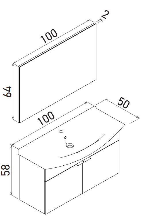 Orka Purus Asma Banyo Dolabı Takımı 100cm Beyaz