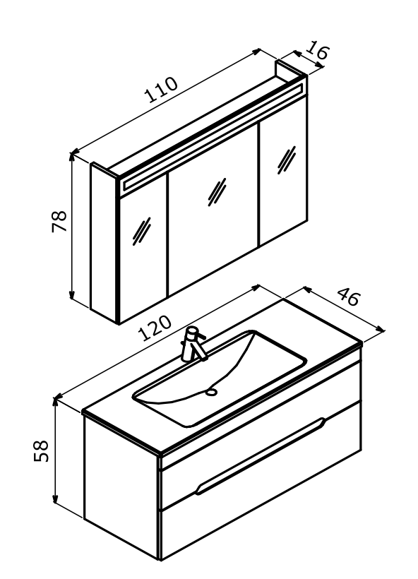 Üst Modül Tipi: Dolaplı Ayna, Led Aydınlatmalı