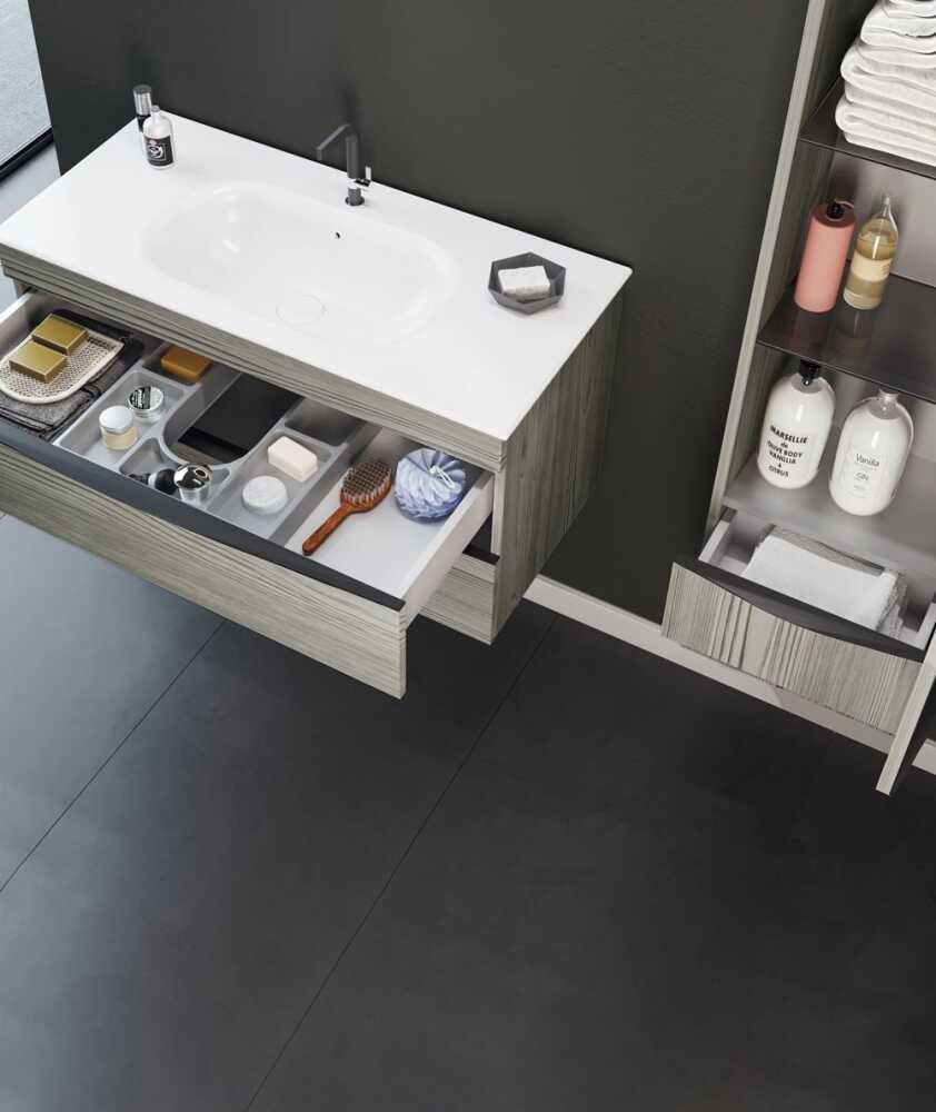 Orka banyo dolabının modern tasarımı her türlü banyo dekoruna uyum sağlar.