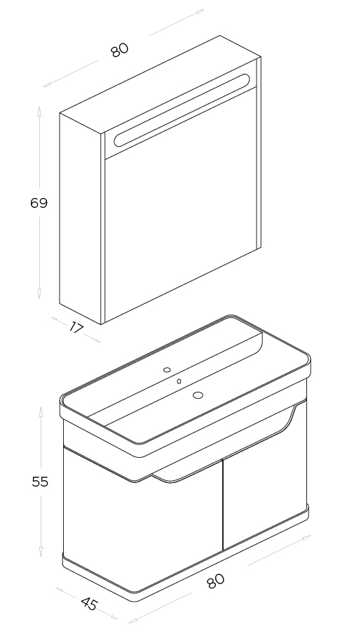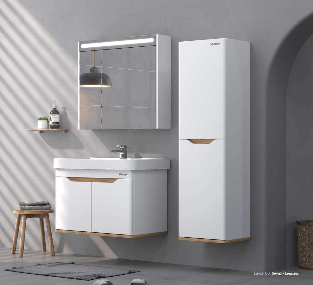 Shower Lenon Banyo Dolabı 80cm Beyaz