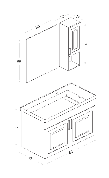 Shower Loren Banyo Dolabı 80cm Beyaz