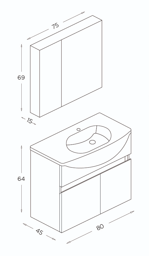 Shower Star Banyo Dolabı 80cm Beyaz-İrony