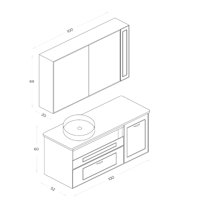 Shower Trio Banyo Dolabı 100cm Sahra-Beyaz