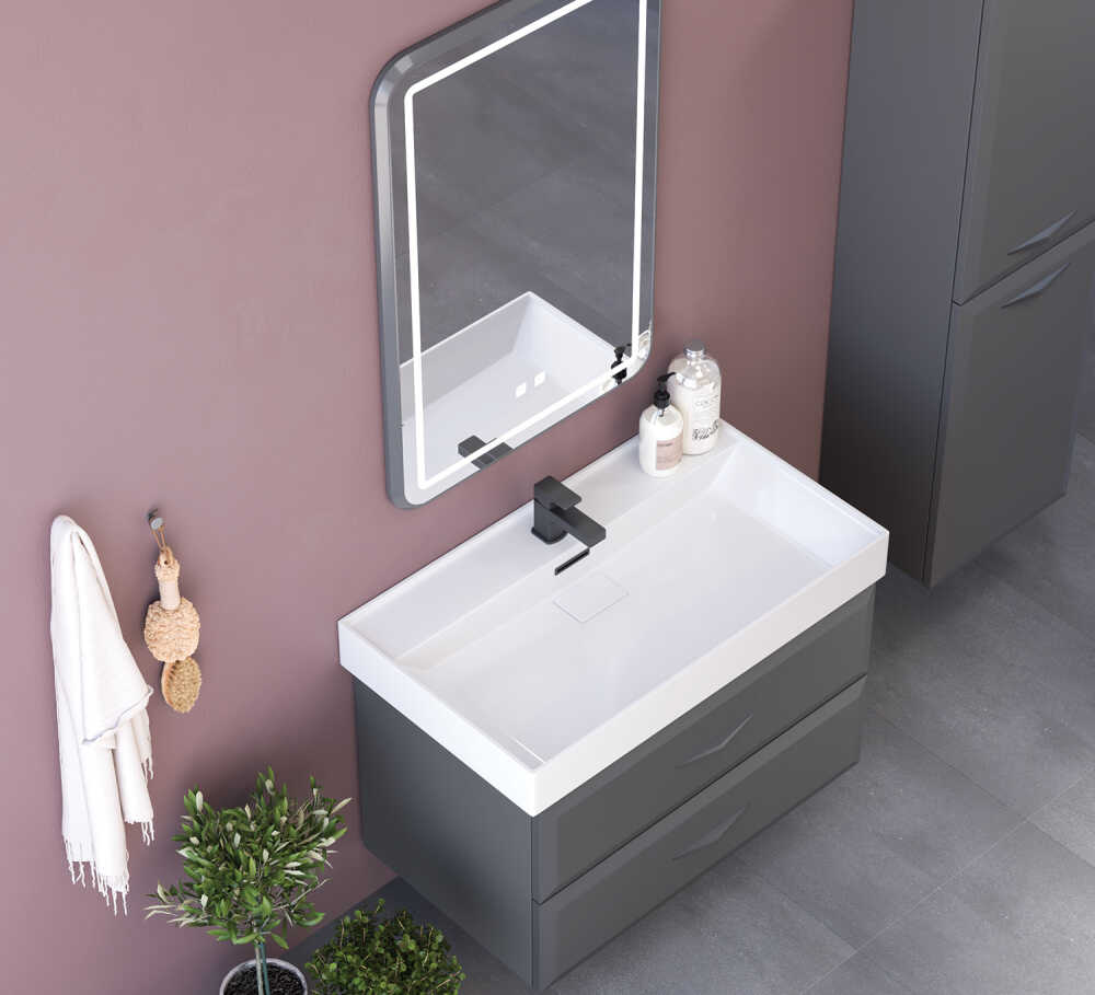 Shower Truva Banyo Dolabı 80cm Antrasit Gri