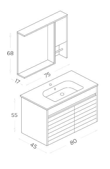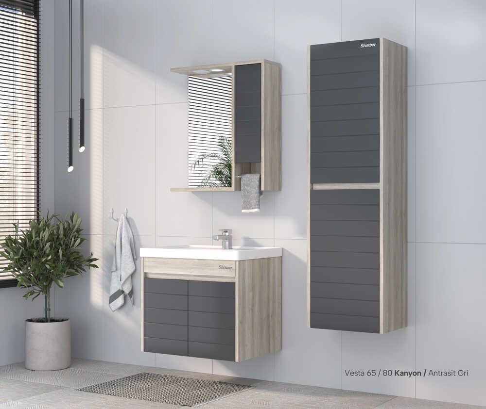 Shower Vesta Banyo Dolabı 80cm Kanyon-Antrasit Gri
